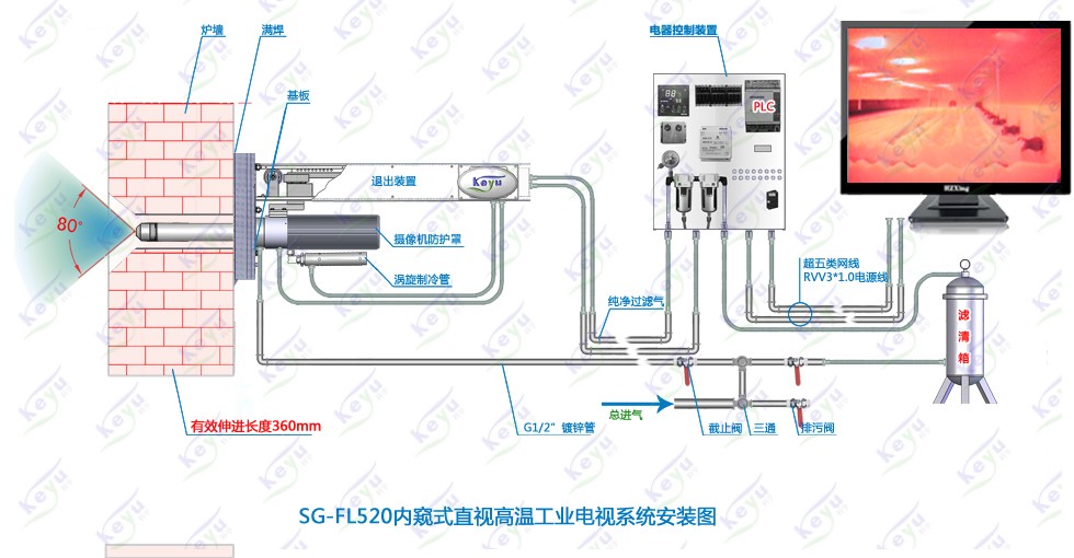 采用自動(dòng)光圈的高溫針孔鏡頭,提高鏡頭對(duì)爐內(nèi)照度變化下的敏感度;鏡頭端面采用藍(lán)寶石制成,能耐600℃高溫,即使在意外情況下,也不致于燒壞鏡頭。